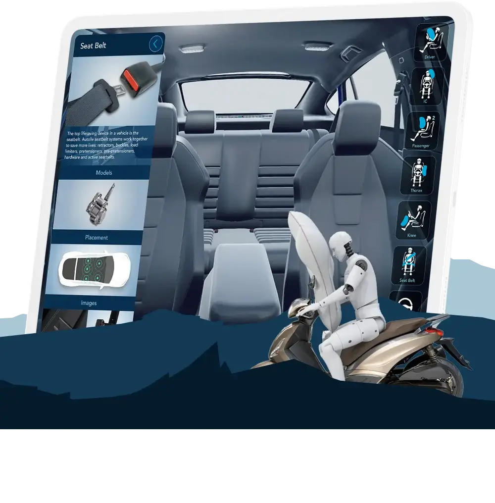 The Car Safety App is a visual interface that explains how vehicle safety systems interact, showing the relationships among airbags, seatbelts, sensors, and other safety tools, and how the software decides on actions in real time. Its goal was to make complex, conditional safety logic immediately understandable to drivers, engineers, and safety teams across cultures and languages.